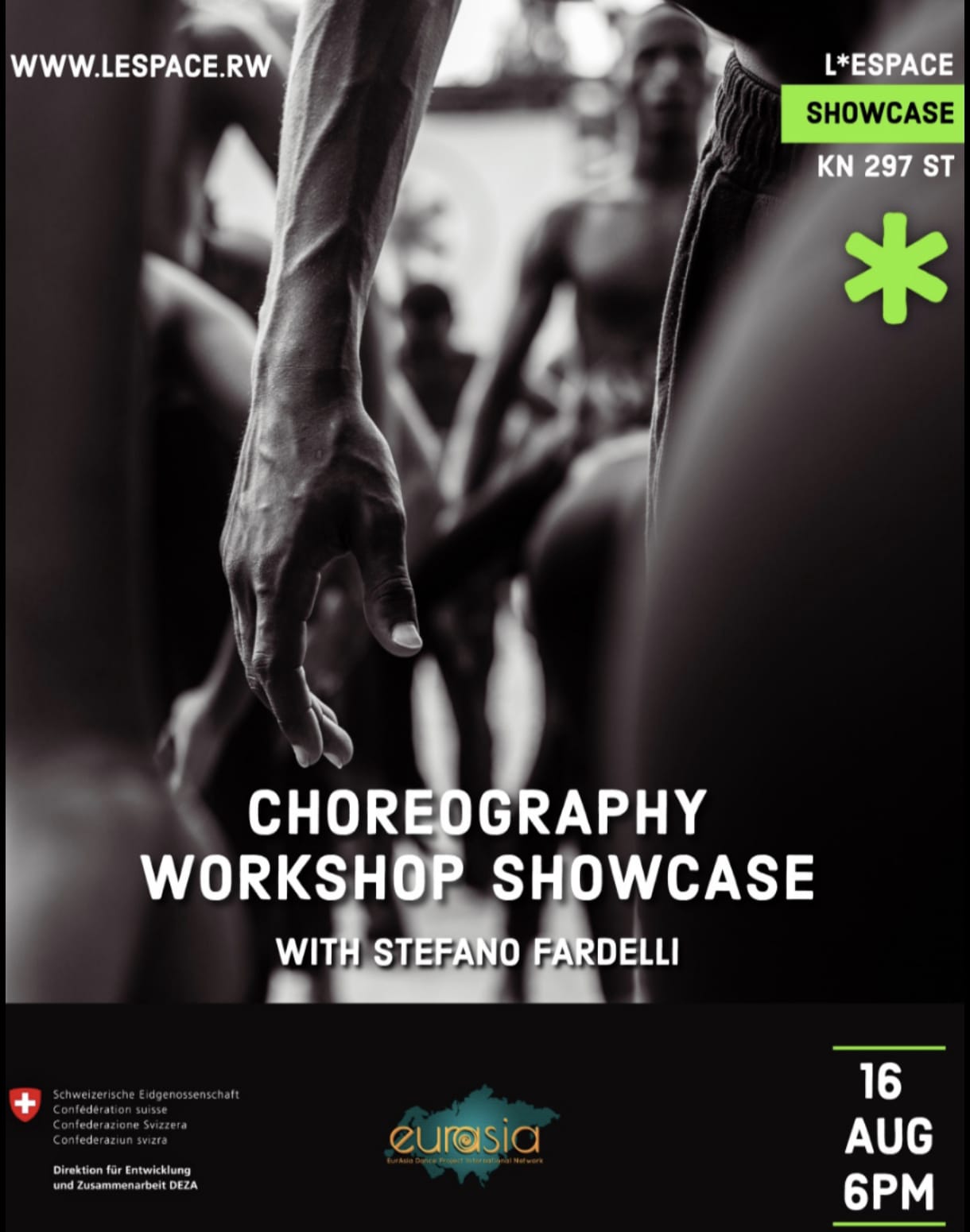 The tour in the country is brought by EurAsia Dance Project International Network ETS, directed by Stefano Fardelli, in collaboration with L’Espace of Kigali and supported by the Swiss Development Cooperation.