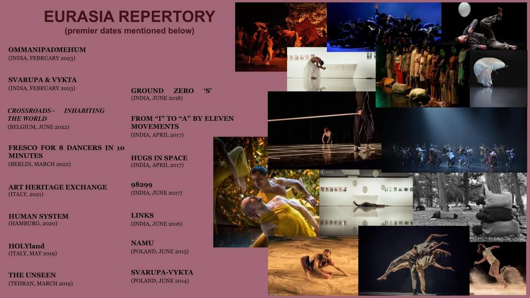 The shows have been produced and presented in collaboration with various institutions, festivals, theatres, choreographic centers and companies in different countries in all the five continents and since 2023 taken on tour around the world by the newly founded E.D.C. – EurAsia Dance Company.