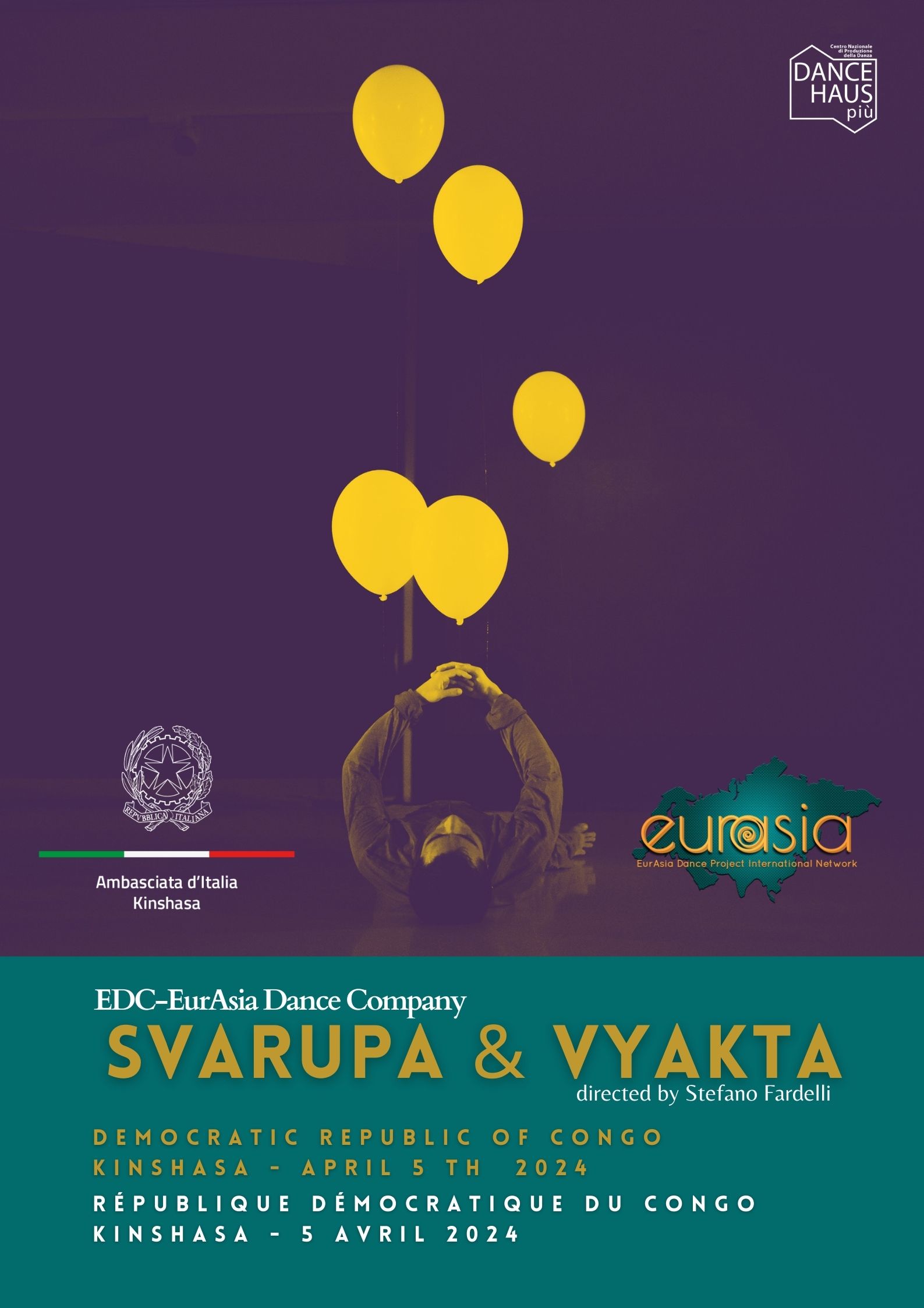The tour in D. R. of Congo is brought by EurAsia Dance Project International Network in collaboration with the EurAsia Partner DANCEHAUSpiú´ of Milan, Italy, and supported by the Embassy of Italy in Kinshasa.